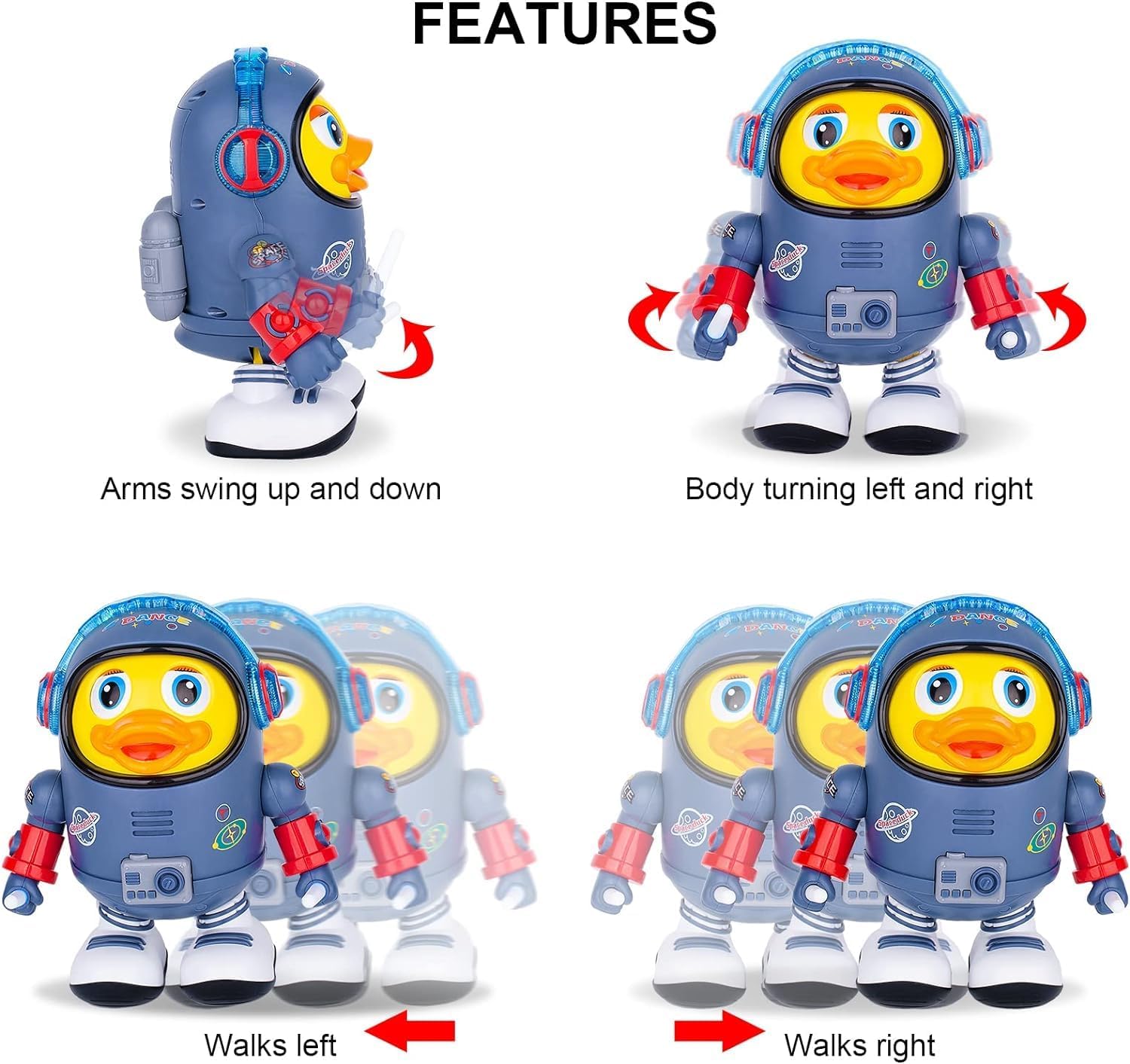 Highly Interactive: The baby duck toy can move back and forth, and the arms swings up and down. It's available for kids dance together to the cool lights and music.