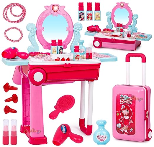 💄 COMPLETE BEAUTY SET FOR KIDS: This 21-piece makeup set is packed with all the essential accessories to bring out your child’s inner stylist. From lipsticks and perfume bottles to a fun, realistic hairdryer and mirror, every piece is designed to encourage imaginative play for hours of fun.
