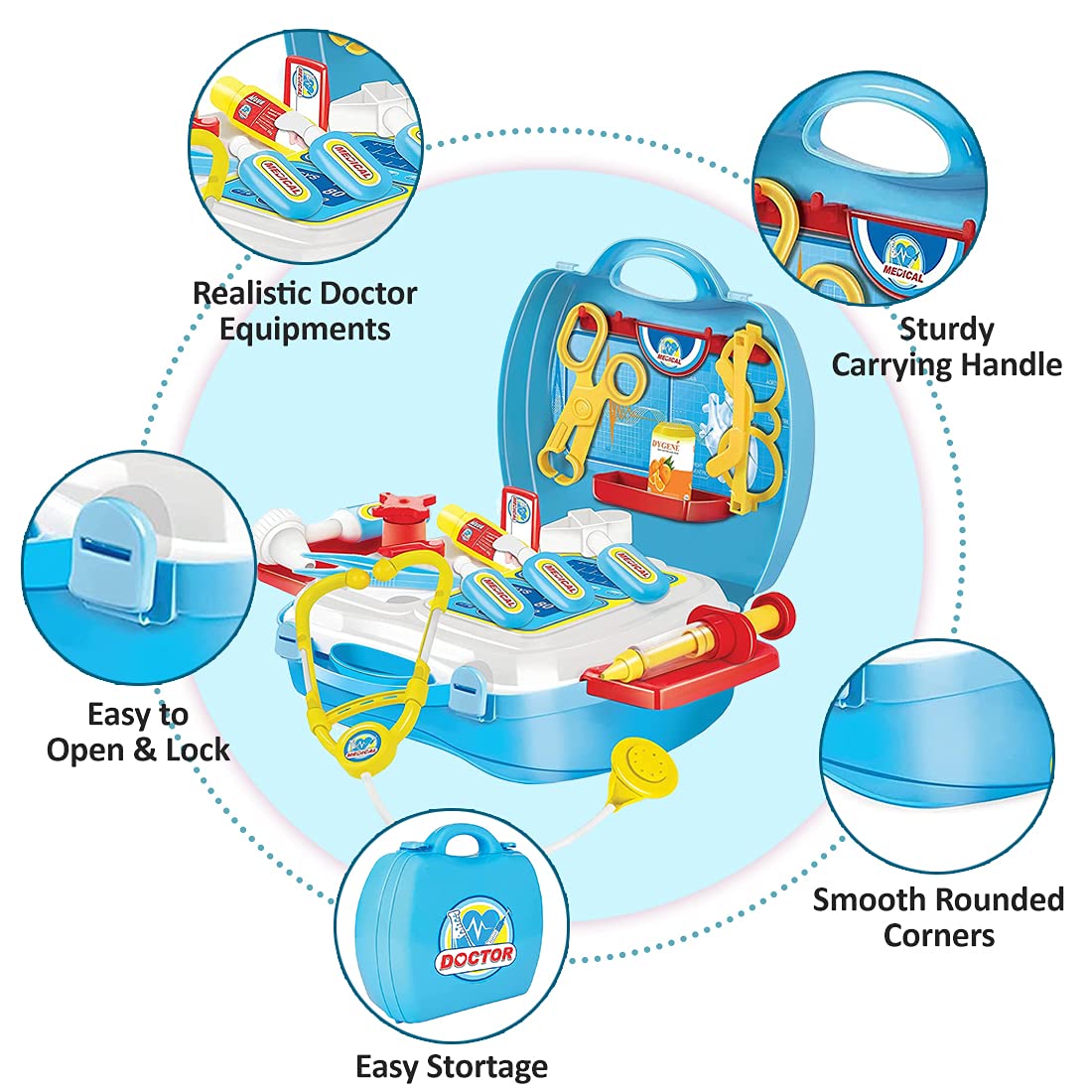 Compact and Portable: The set usually comes in a carry case or sturdy storage box, often shaped like a doctor’s bag or medical kit. The case is designed for easy transport and storage, making it convenient for children to take the toy on the go.