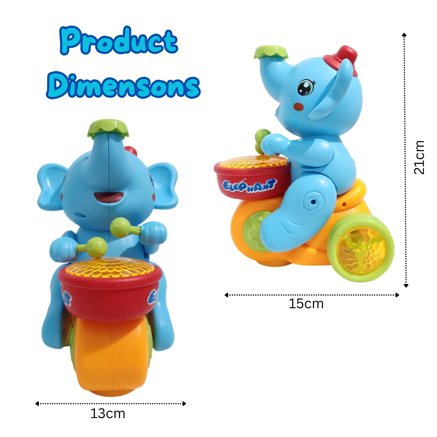 Joyful Rhythm and Motion: The Elephant Toy doesn’t just play music, it brings joy to life! Watch as it drums to a cheerful beat, shaking its body and turning in circles, filling the room with fun and laughter. Your child will be captivated by the playful movements and rhythmic drum beats.